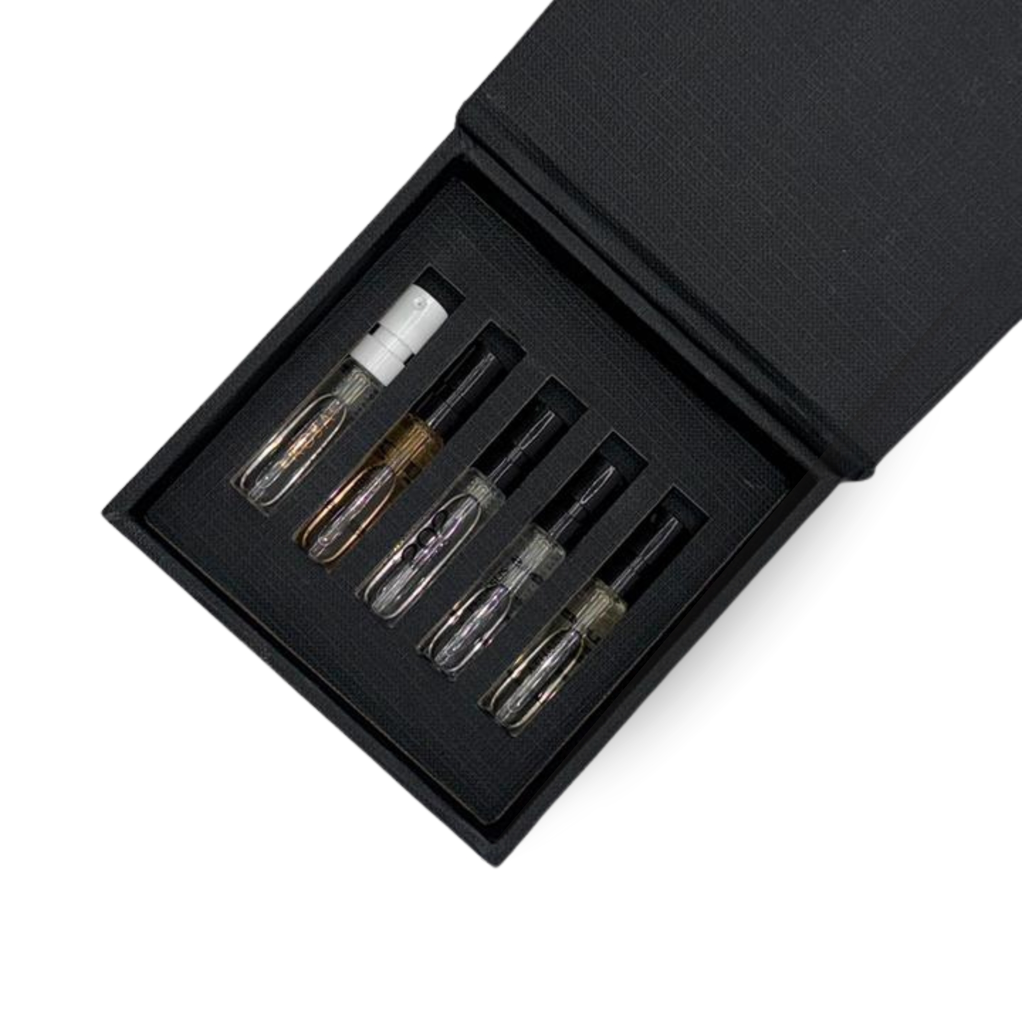 Elige 5 viales de entre nuestra selección y recíbelos en una elegante caja negra. Tras probarlos, recibirás por email y WhatsApp un código exclusivo para aplicar el valor íntegro del set ($1,500 MXN) en la compra de tu fragancia favorita en autricastore.com.