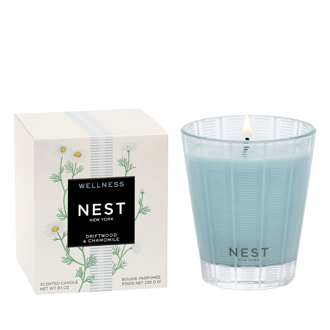 ✨ Prepara cuerpo y mente para un descanso profundo con esta Vela Perfumada, con notas calmantes de manzanilla, madera flotante, sándalo y vainilla.
