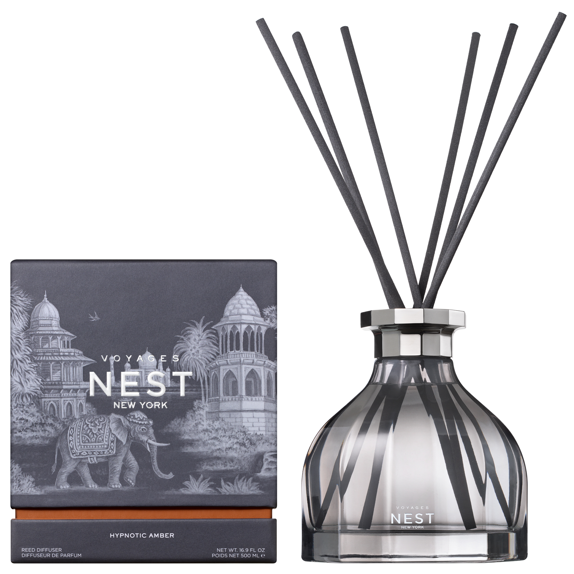 Descubre el Hypnotic Amber Difusor, una pieza esencial de la colección VOYAGES, la línea premium de NEST New York creada para llenar los espacios con aromas inspirados en atmósferas envolventes, cálidas y profundamente sensuales. Esta versión ambiental captura la esencia rica, dorada y magnética de Hypnotic Amber, evocando la calidez de resinas ambaradas, la profundidad de especias aromáticas y la elegancia de maderas oscuras iluminadas suavemente por la luz del atardecer.